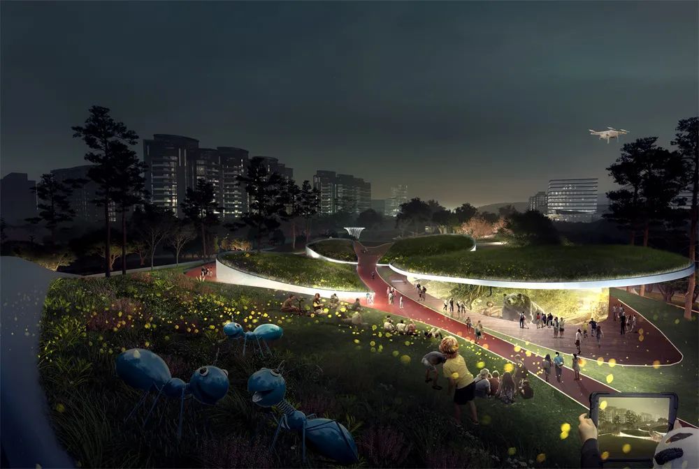 植物群落營造生態(tài)友好型的自然探索 園,打造自然植物生態(tài)群落戶外研學(xué)基地。整合景觀、裝置、科普及生態(tài)修復(fù)等內(nèi)涵,打造一座與周邊環(huán)境融合的無動(dòng)力探索基地,用多種呈現(xiàn)方式去展現(xiàn)在地生物多樣性和科普知識(shí)。