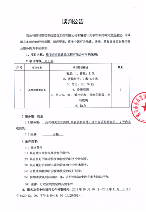市政公司車(chē)輛采購(gòu)競(jìng)爭(zhēng)性談判公告