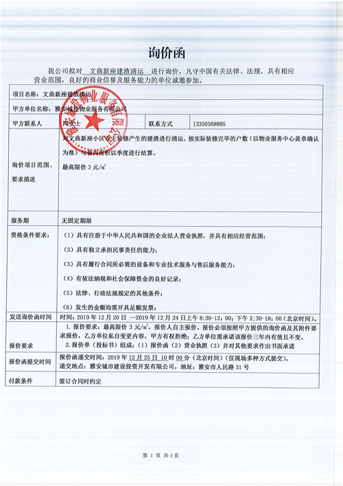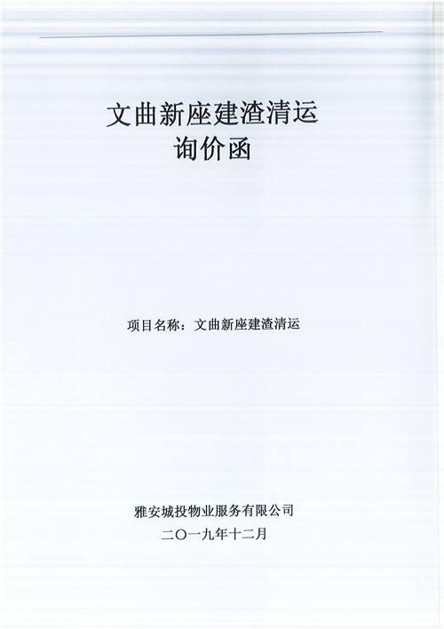 文曲新座建渣清運(yùn)詢價(jià)函