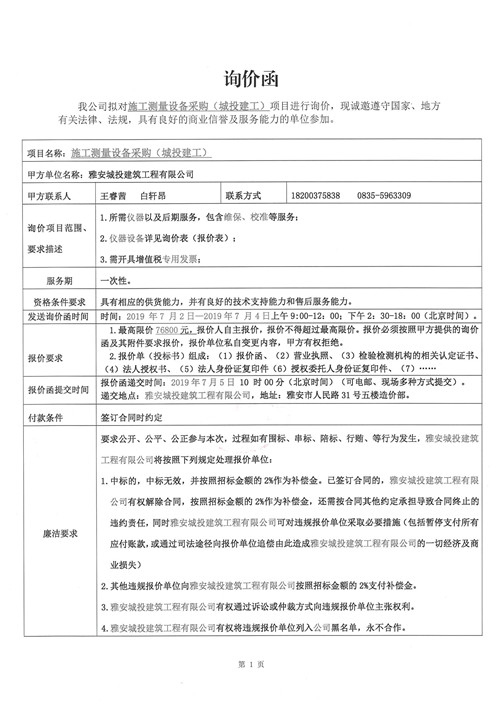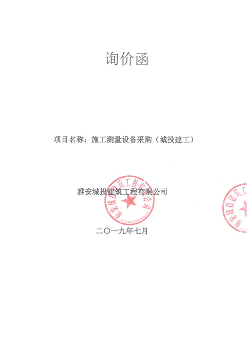 詢價函 施工測量設(shè)備采購(城投建工)