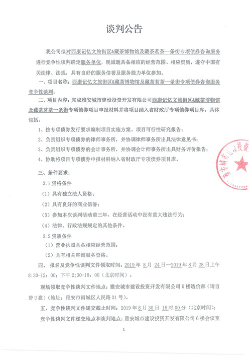 西康記憶文旅街區(qū)&藏茶博物館及藏茶茗茶一條街專項債券咨詢服務競爭性談判公告