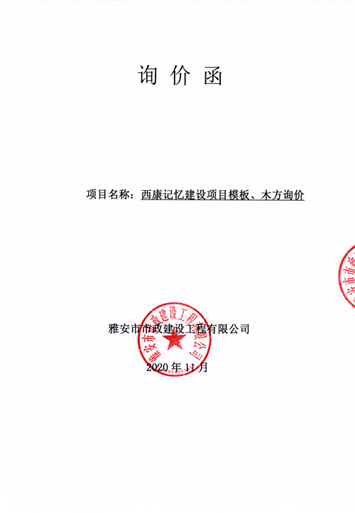 市政公司西康記憶建設(shè)項(xiàng)目模板、木方詢(xún)價(jià)函