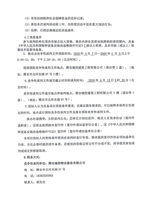 城投物業(yè)公司大興公租房小區(qū)電梯維保服務項目競爭性談判公告