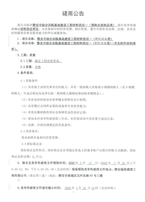雅安市綜合訓練基地建設工程材料供應——(靶機設備類)