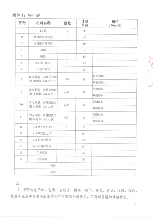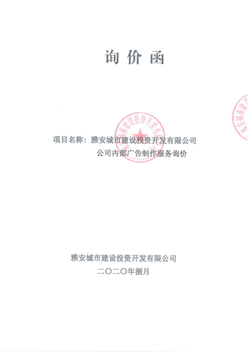 雅安城市建設(shè)投資開發(fā)有限公司公司內(nèi)部廣告制作服務(wù)詢價函