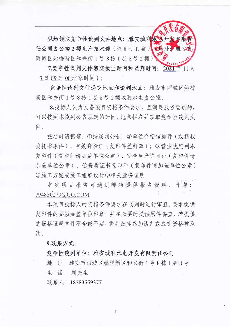 城利水電公司35kv禁飛II回滑坡?lián)岆U(xiǎn)恢復(fù)工程競(jìng)爭(zhēng)性談判