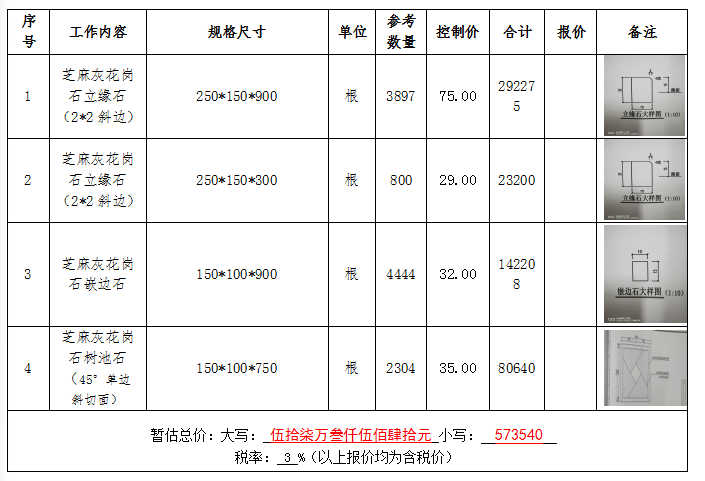 2、報(bào)價(jià)單位需提供250*150*300芝麻灰花崗石樣品,樣品在開標(biāo)之前送達(dá)。
