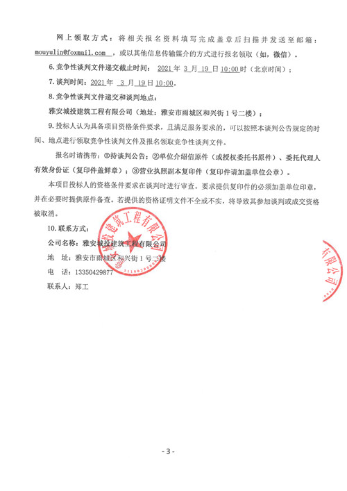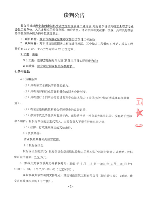 城投建工公司雅安市西康記憶生態(tài)文旅街區(qū)項目二號地塊土石方專業(yè)分包工程競爭性談判公告