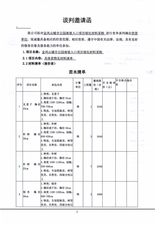 金鳳山城市公園南坡入口項(xiàng)目綠化材料采購(gòu)談判邀請(qǐng)函