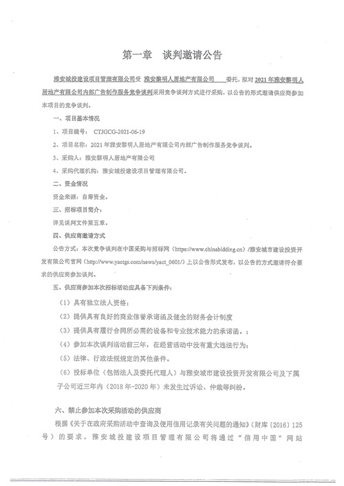 黎明人居公司內部廣告制作服務競爭性談判公告