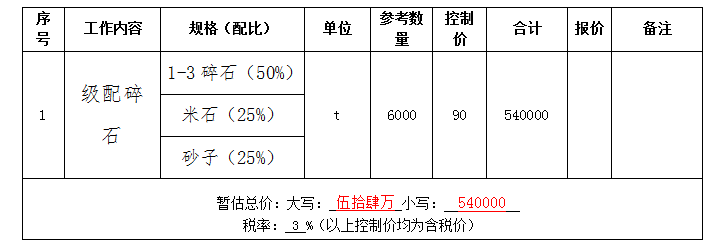 注:1、單價單位為元,單價為含稅單價,稅率不得低于3%。