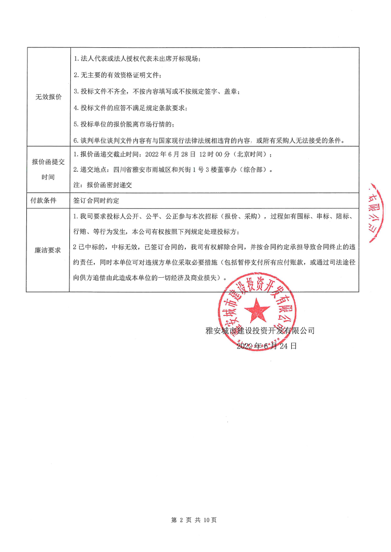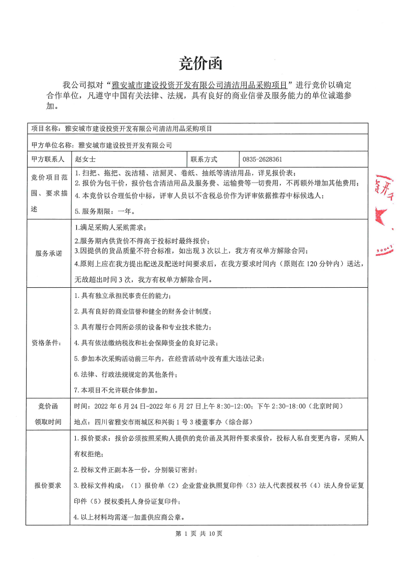 雅安城市建設(shè)投資開發(fā)有限公司清潔用品采購項目競價公告
