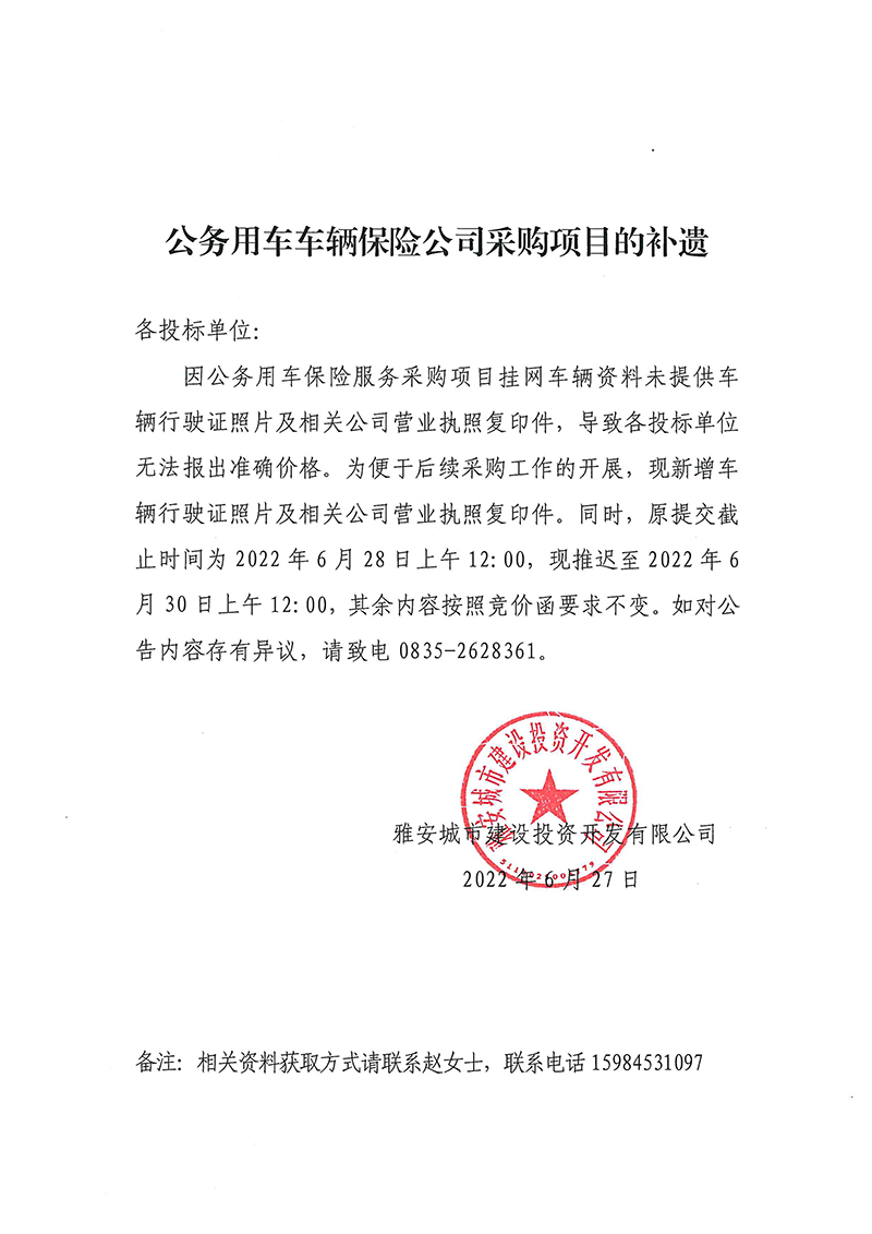 公務(wù)用車車輛保險公司采購項目的補遺