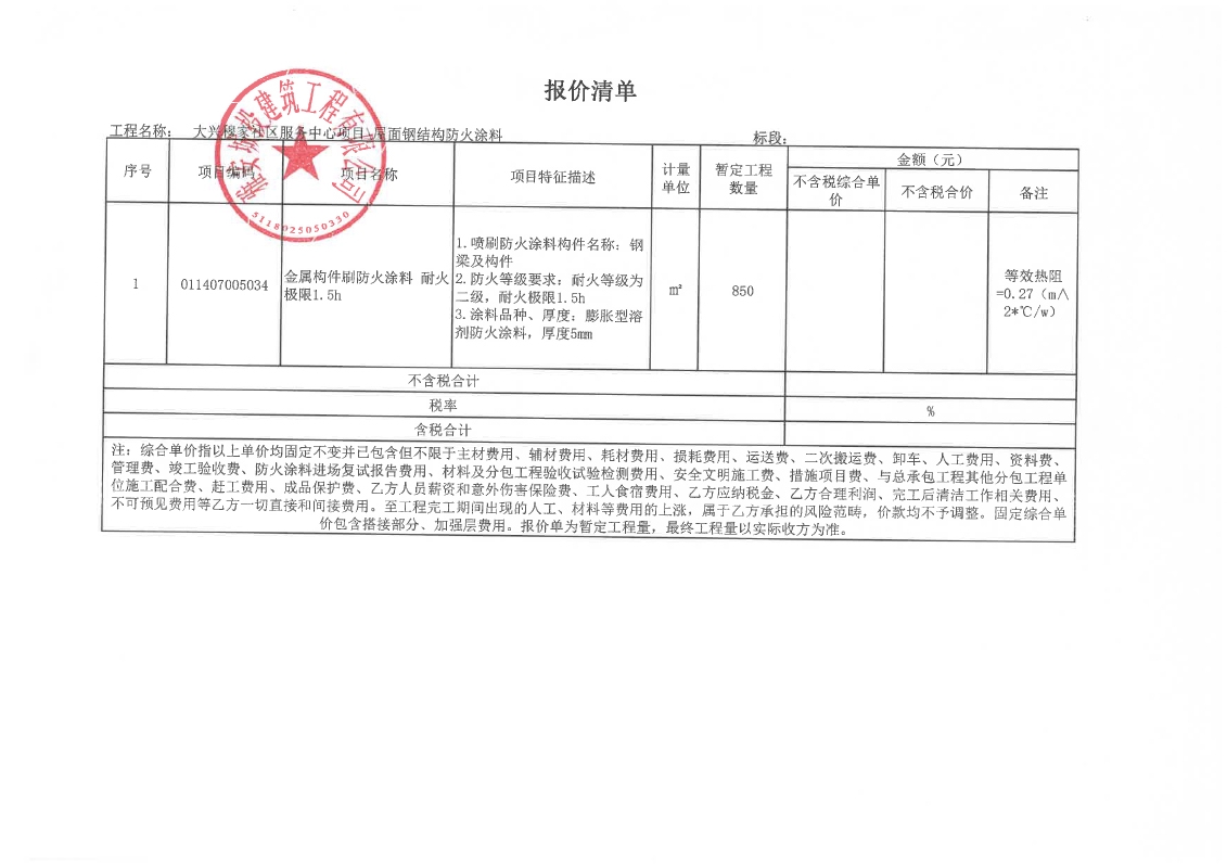 大興穆家社區(qū)服務中心項目屋頂鋼結構防火涂料競價公告
