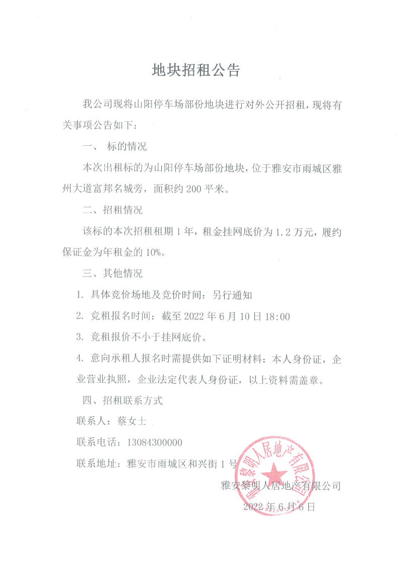 山陽停車場部分地塊對外招租公告