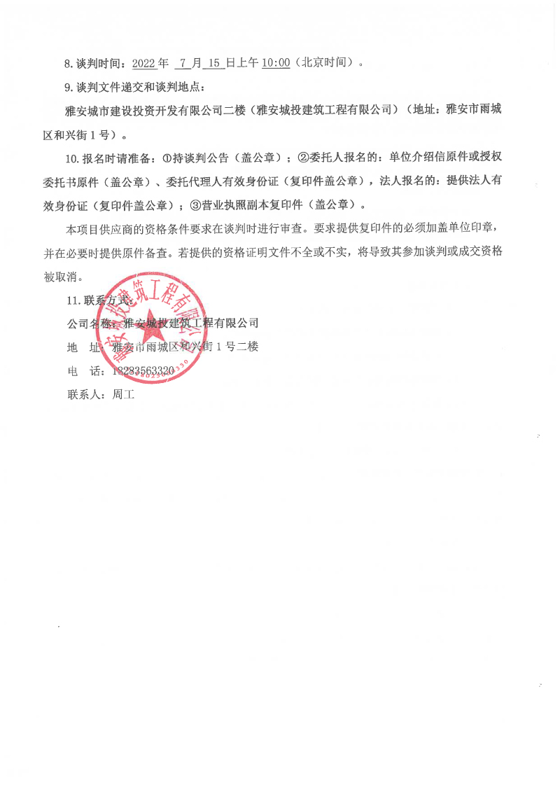 雅安市西康記憶生態(tài)文旅街區(qū)項目一號地塊2#、5#、6#樓預(yù)拌混凝土、砂漿采購合作談判公告