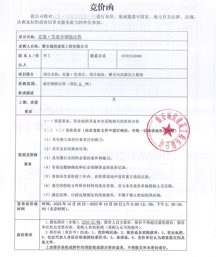 花襄·里廢棄鋼筋出售競價(jià)公告
