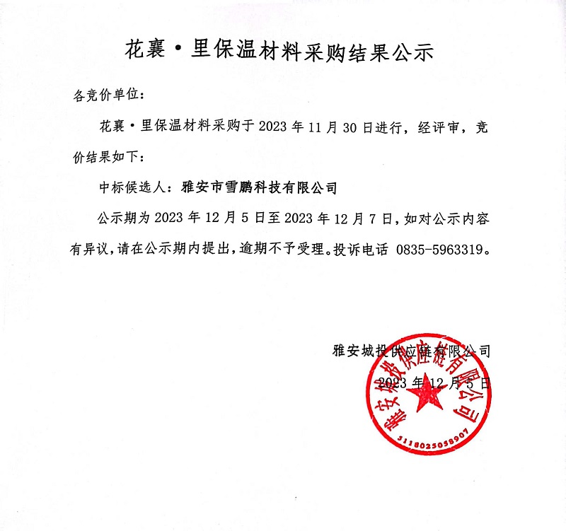 花襄·里保溫材料采購結(jié)果公示