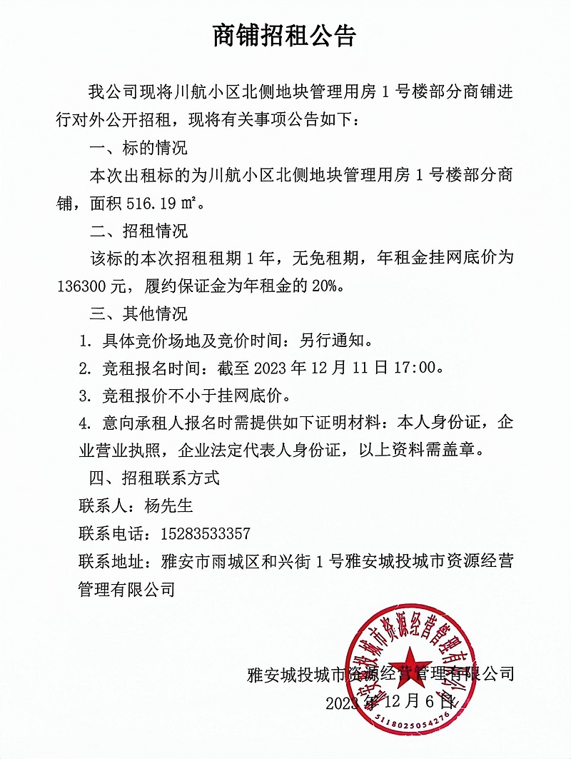 川航小區(qū)北側(cè)地塊管理用房1號(hào)樓部分商鋪招租公告