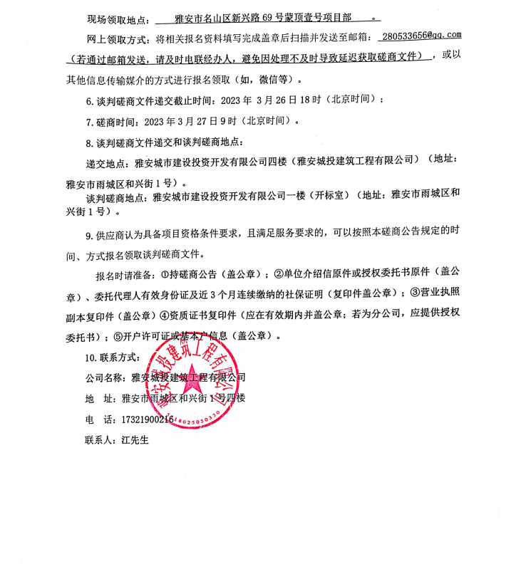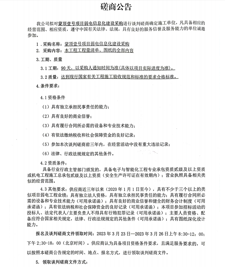 蒙頂壹號項目弱電信息化建設采購談判磋商公告