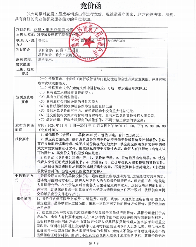 花襄·里廢棄鋼筋出售競價(jià)公告