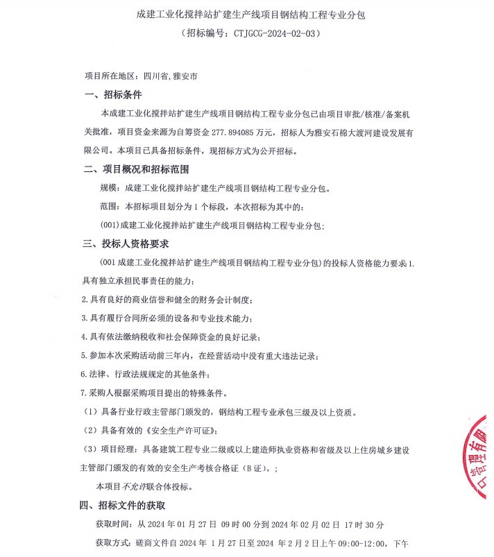 成建工業(yè)化攪拌站擴建生產(chǎn)線項目鋼結(jié)構(gòu)工程專業(yè)分包公告