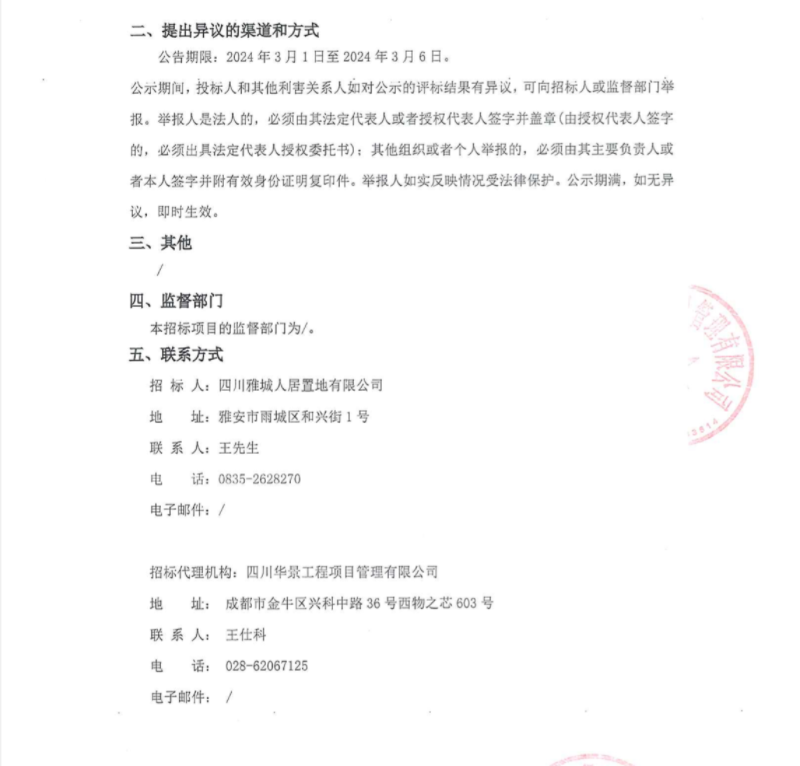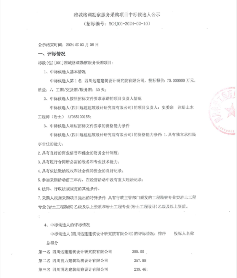 雅城格調堪察服務采購項目中標候選人公示