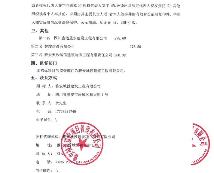 雅州壹號(hào)院項(xiàng)目售樓部和樣板間(3套)設(shè)計(jì)、施工項(xiàng)目(第二次)中標(biāo)候選人公示