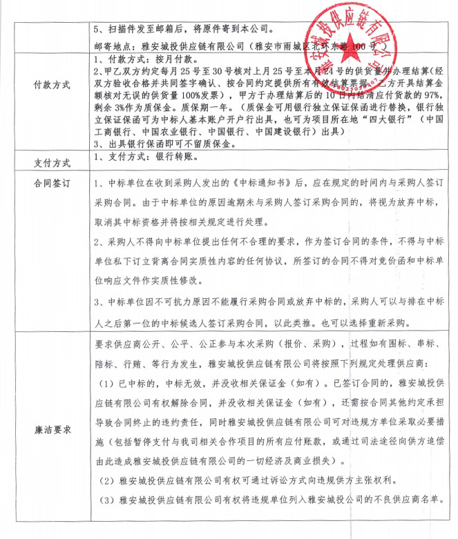 雅安城投供應(yīng)鏈有限公司電線電纜采購競價公告