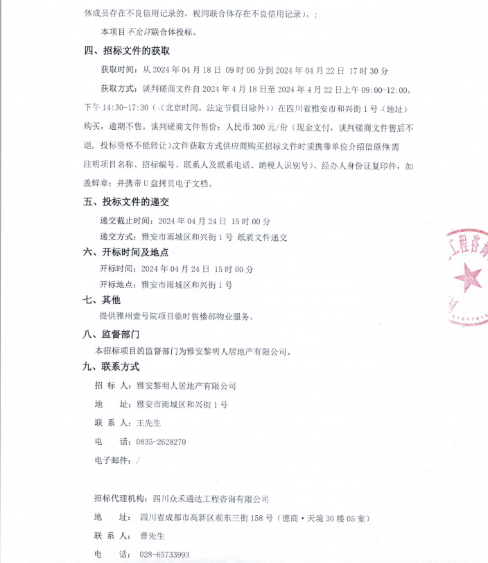 雅州壹號(hào)院項(xiàng)目臨時(shí)售樓部物業(yè)服務(wù)采購項(xiàng)目公告
