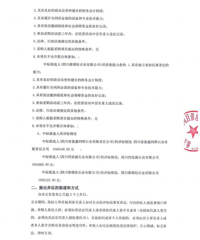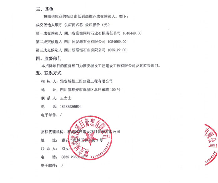雅安市大興生態(tài)旅游建設(shè)項(xiàng)目花崗石采購(gòu)項(xiàng)目(第二次)中標(biāo)候選人公告