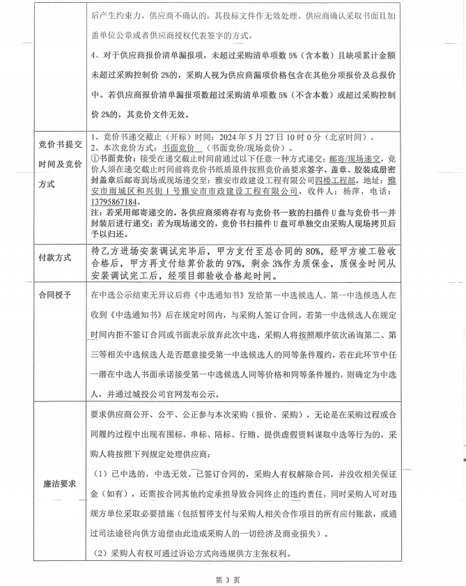 美羅鎮(zhèn)一體化設備競價函
