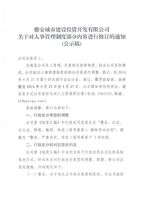 關(guān)于對(duì)人事管理制度部分內(nèi)容進(jìn)行修訂的通知